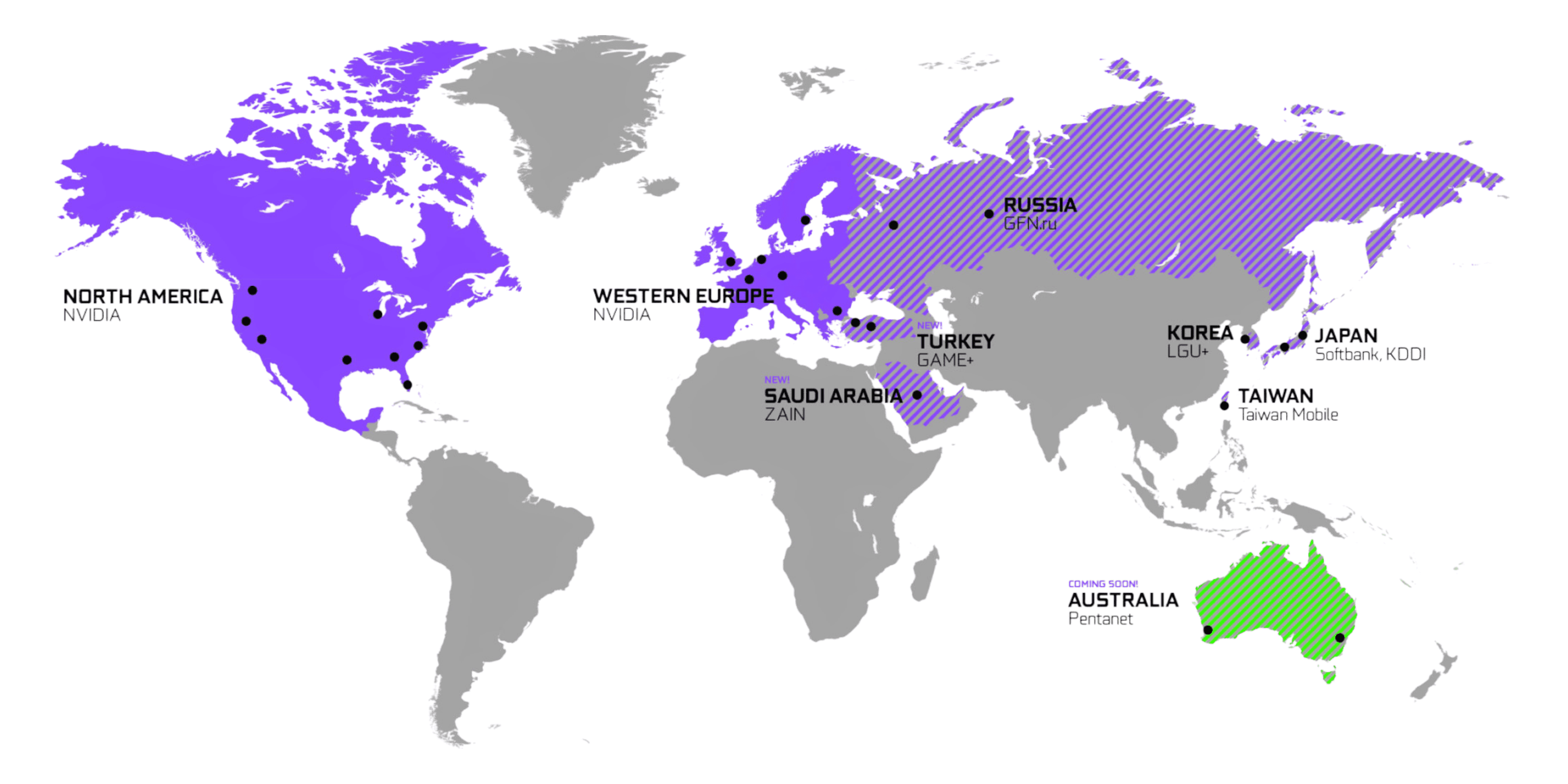 GeForce's servers (Australia is now functional—map slightly outdated)